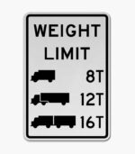 Weight Limit Signs are traffic control devices used to indicate the maximum weight allowed for vehicles on a particular road or bridge. These signs are essential for ensuring the safety and integrity of roadways and bridges by preventing overweight vehicles from causing damage and potential hazards.